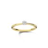 Solitair (verlovingsring) in 18 K geelgoud in het midden één diamant in gezet van 0,05 ct. een natuurlijke diamant briljante slijpvorm is de meest populaire, ronde slijpvorm voor diamanten en andere edelstenen, die 57 van 58 facetten heeft om het licht maximaal te laten reflecteren De zetting, of het gedeelte van het ring dat de steen vasthoudt, is gemaakt van witgoud. De keuze voor een witgouden zetting bij een ring of trouwring is inderdaad vaak gemaakt om de steen beter tot zijn recht te laten komen. Witgoud contrasteert mooi met de meeste edelstenen, waardoor de schittering van de steen meer opvalt.
